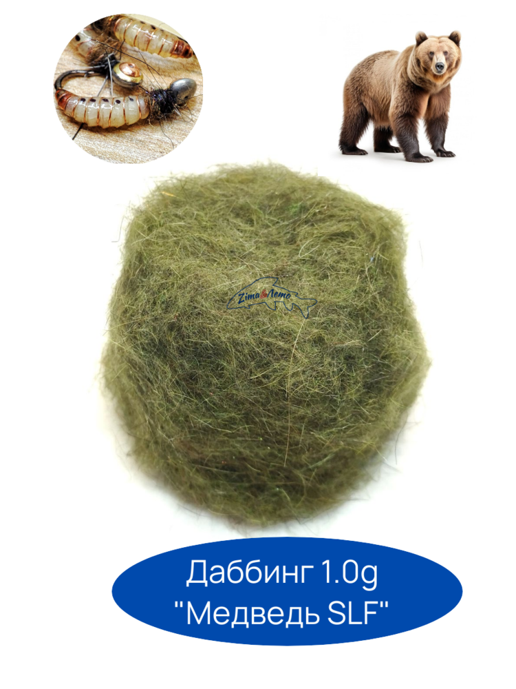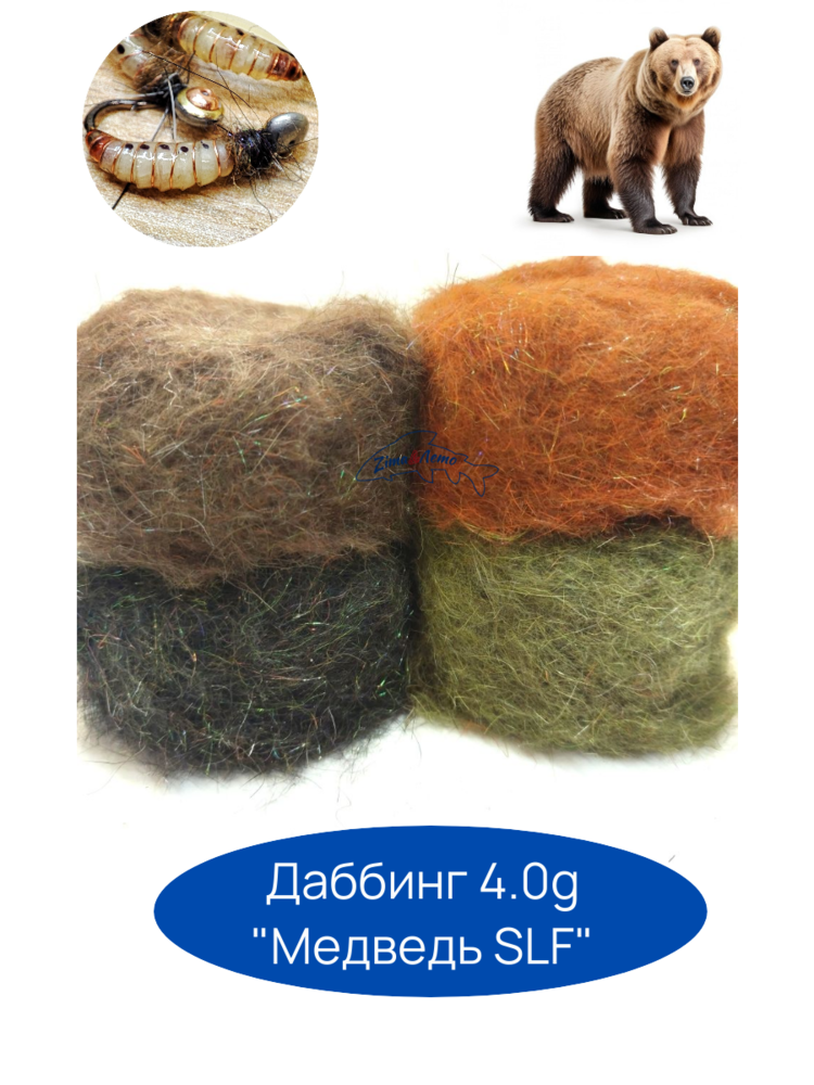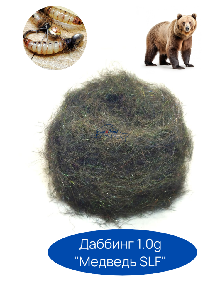 Даббинг широкого применения из смеси меха медведя и кролика, блестящих волокон SLF, и антрона. Хариус очень любит мухи и мормышки их этого даббинга.
